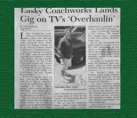 Lasky Coachworks featured in the Discovery Channel show "Overhaulin"