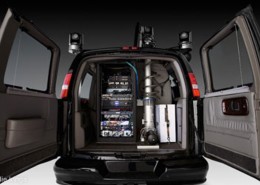 We have built mounts robust enough to be used when the van was traveling at speed. We then ran all of the wiring through marine stainless steel trap doors to maintain water tightness, used the trap door style so that the camera cables could be safely stowed inside. We created a designed monitor securing bracket to hold the monitors when maneuvering the van.